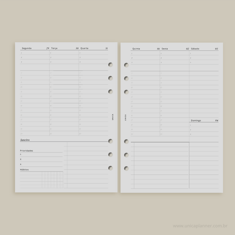 O Planner 2026 Semanal de Agendamento da Unica Planner foi desenvolvido para quem precisa organizar a semana com foco nos horários, perfeito para compromissos, reuniões, aulas e uma rotina cheia de detalhes.