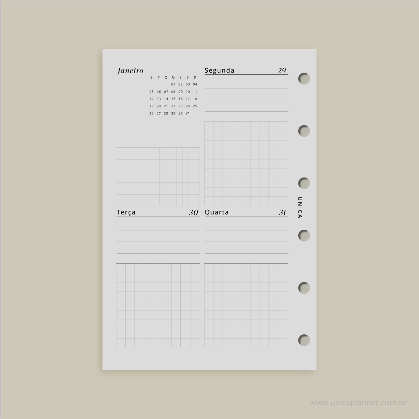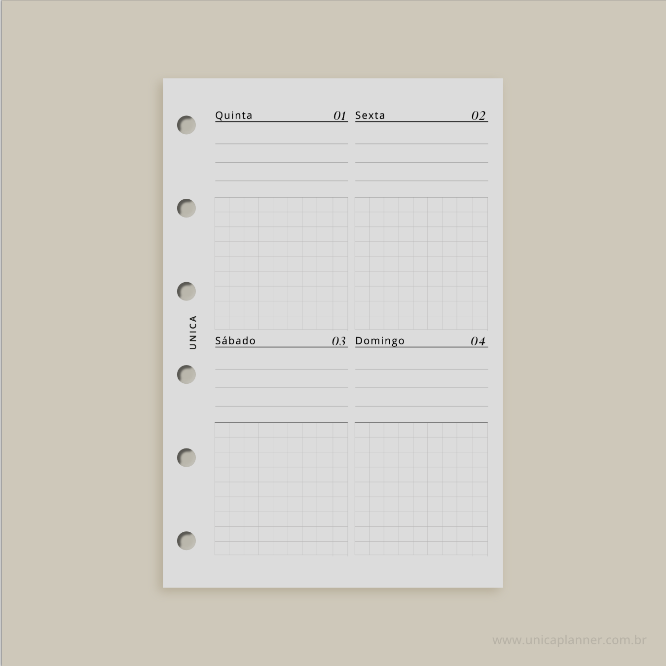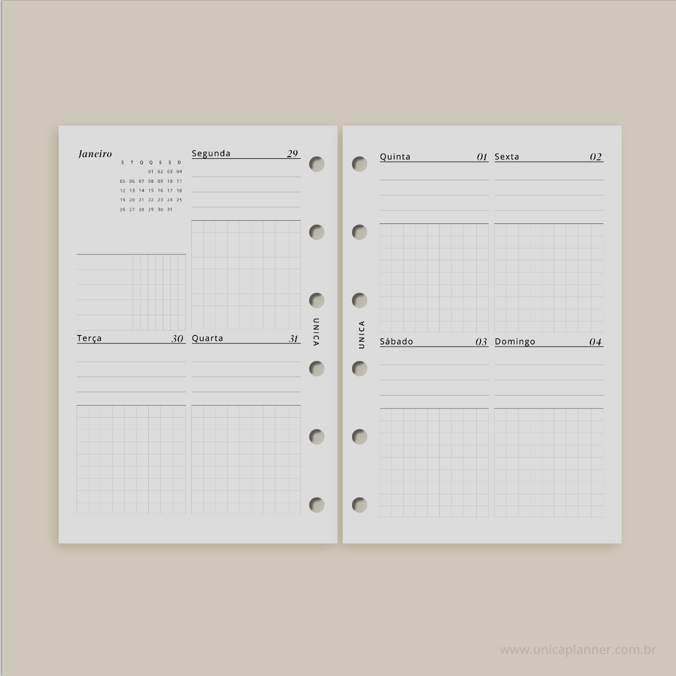 Minimalista e premium, ele é ideal para quem gosta de visualizar a semana inteira de forma rápida e organizada, trazendo equilíbrio entre vida pessoal, profissional e estudos.
