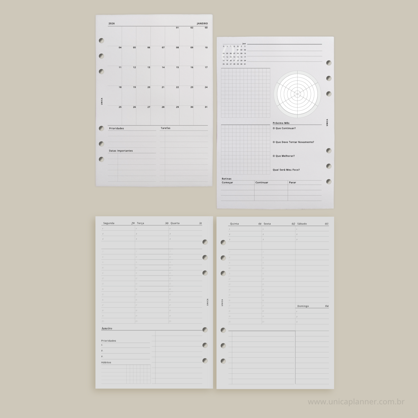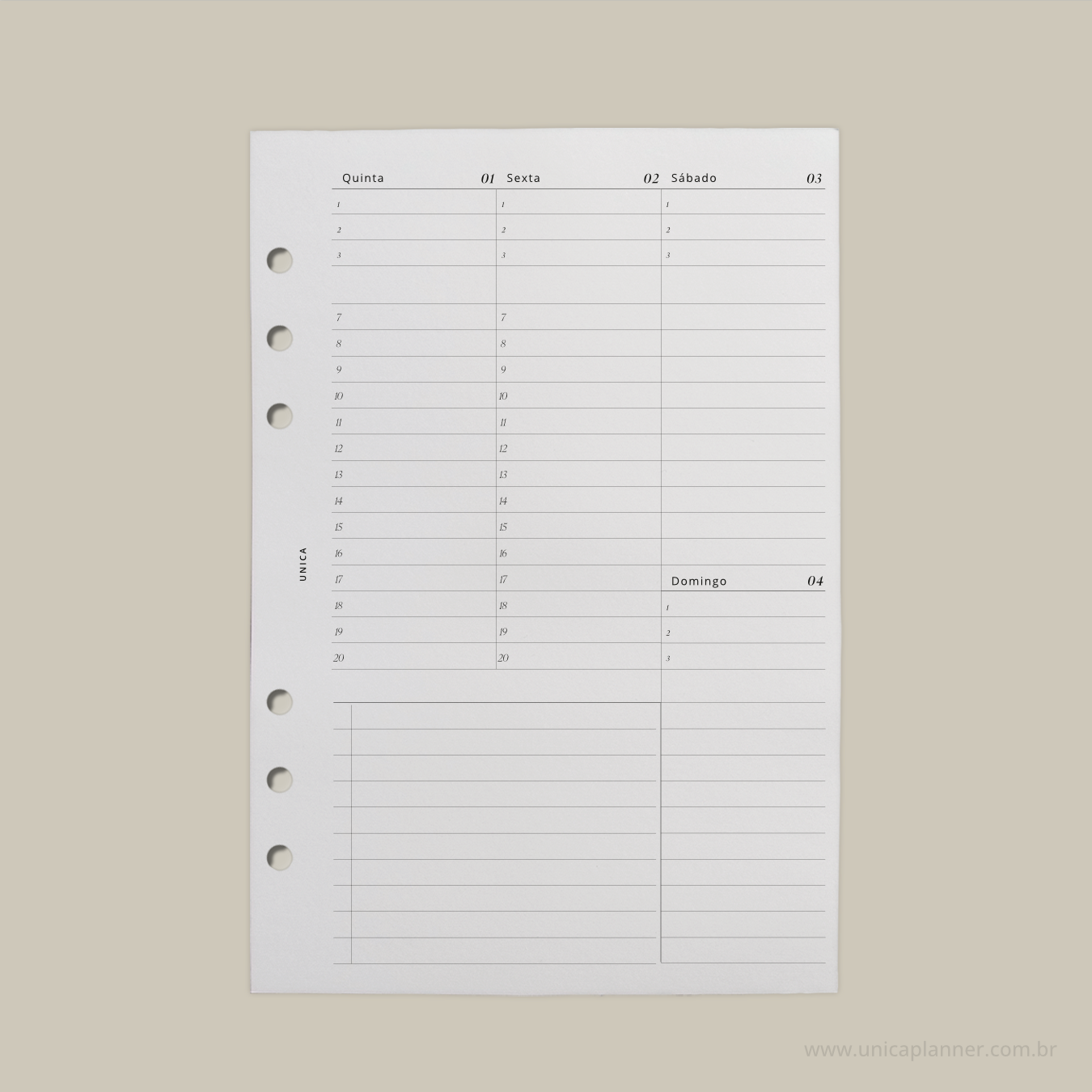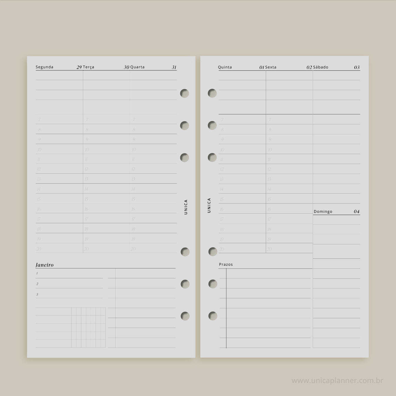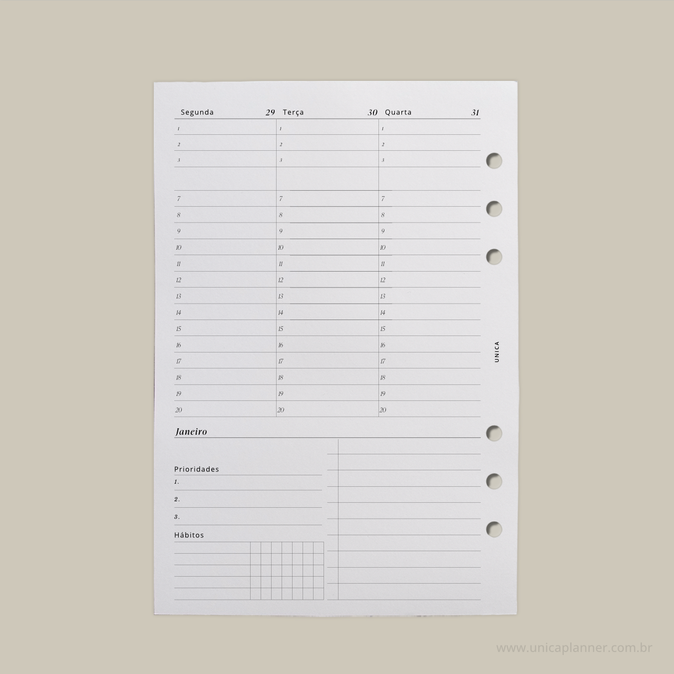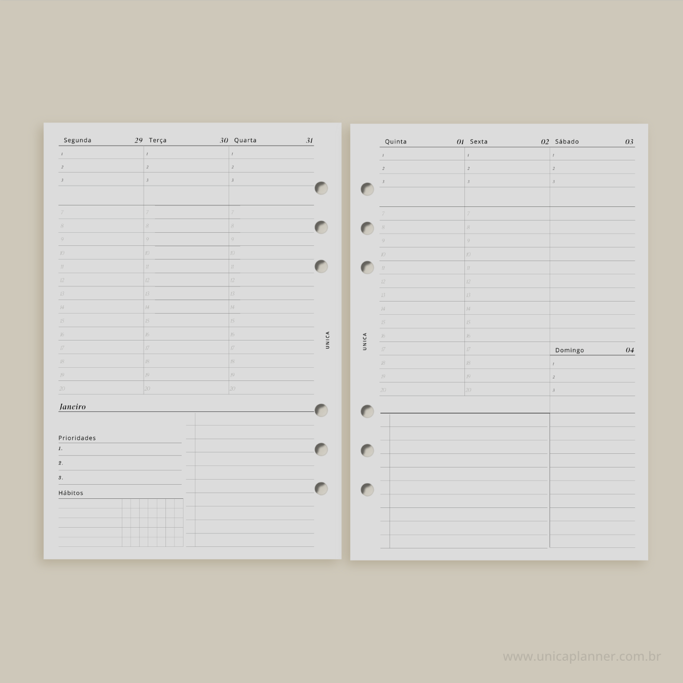 Cases, blocos de planejamento, blocos de anotação, dashboard, divisórias e outros acessórios, os produtos Unica Planner adicionarão um pouco de minimalismo & elegância em seus dia -a-dia. Para isto, você precisa escolher o seu tamanho, ou comparar entre os tamanhos disponíveis para decidir qual função dará para cada UNICA.