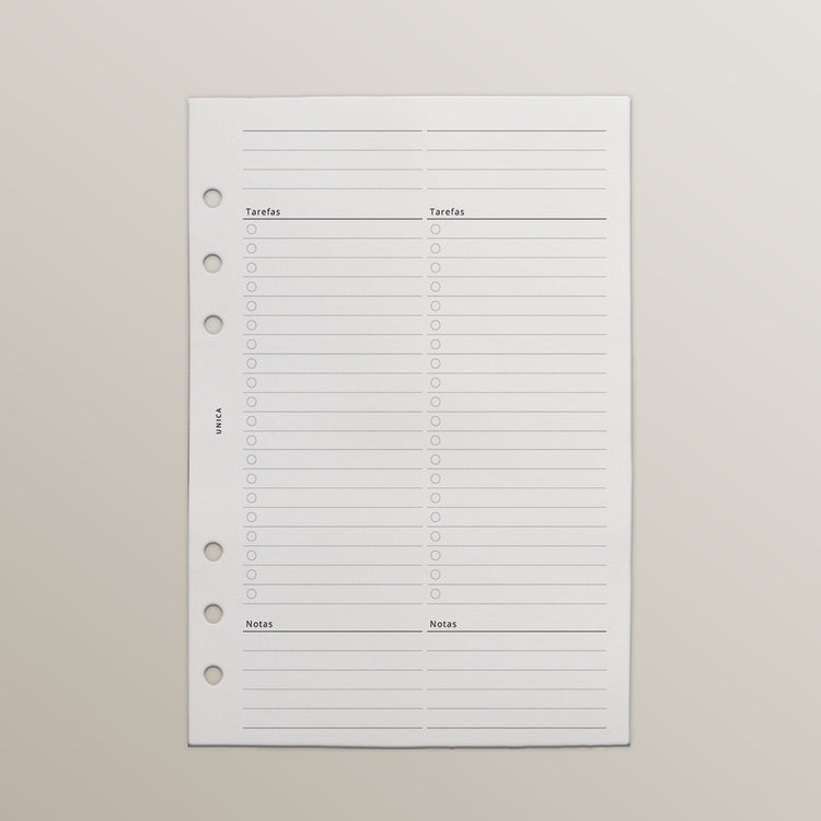 Tarefas e Notas é um bloco com 2 colunas por página com Top 3, Tarefas e espaço para notas e você decide qual função quer dar a ele.